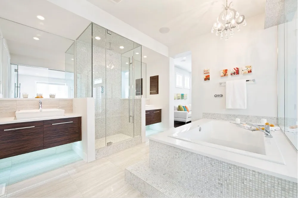- воплощение нестандартных идей планировки: к примеру, сантехнику уже необязательно располагать у стены, а при зонировании интерьера можно полагаться на возможности освещения;