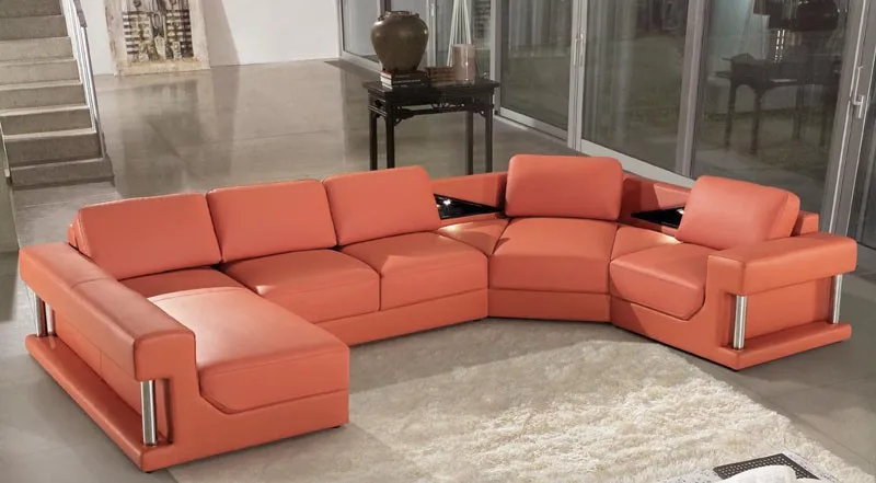 Диван, имеющий такую форму, подойдёт для установки в квартире, в которой проживает большая семья.