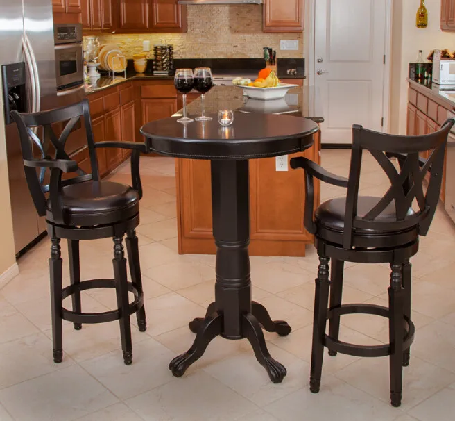 Складные барные стулья, которые могут регулировать высоту, стоит купить тем, кто установил как барную стойку, так и обычный кухонный стол. Это избавит вас от необходимости приобретать дополнительную мебель.