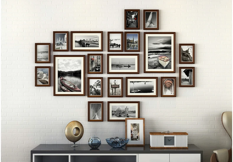 Расположение черно-белых фотографий с использованием одинаковых рамок разных размеров может выглядеть фантастически.