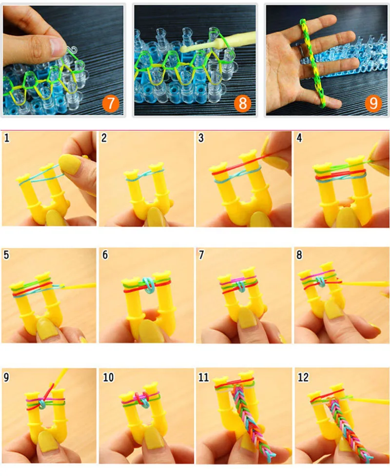 Чтобы сплести браслетик из резиночек, необходимо быть внимательным и придерживаться поочередности надевания резинок, как это указано в каждой инструкции. Кроме того, отдельная резиночка должна лежать на каждом столбце поочередно, не скрещиваться.