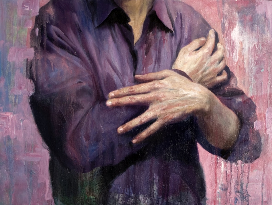 Продолжая работать над поверхностью всей картины, я осветлил области и затемнил другие, продолжая определять массу рук. Если вы посмотрите на свои руки, то увидите, что изгибы и линии определяются тенями и бликами. На изображениях ниже вы можете увидеть тонкие корректировки. По прошествии многих часов эти тонкие «корректировки» в конечном итоге превращаются в готовую работу.