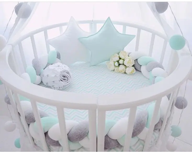 Существует множество разных видов бортиков в круглую кроватку (бамперов). Одни из них состоят из цельного полотна с наполнением, по сторонам которого имеются ленты для крепления к колыбельке. Другие представляют собой отдельные подушечки на лентах. Интересной задумкой дизайнеров являются бортики из множества мягких игрушек.