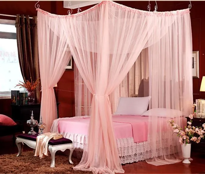 Понадобятся легкие воздушные занавески из тюля, задрапированные на шторной ленте, и потолочные карнизы общей длиной, равной периметру кровати или немного больше. Длина занавесок равна расстоянию от потолка до пола в вашей спальне.