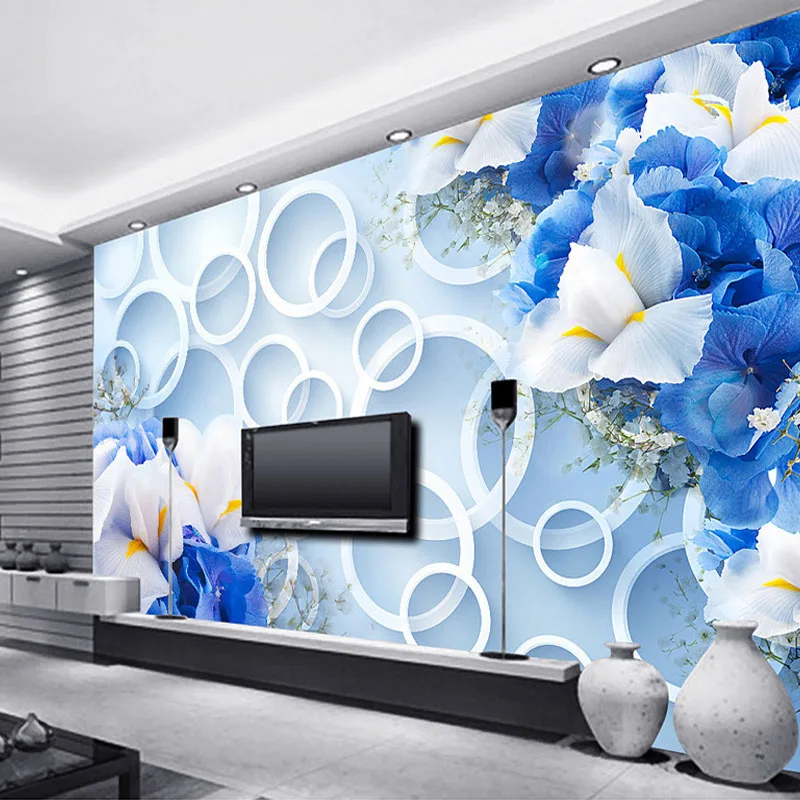 3D фотообои с простым цветочным фоном. современные цветы в простой стене