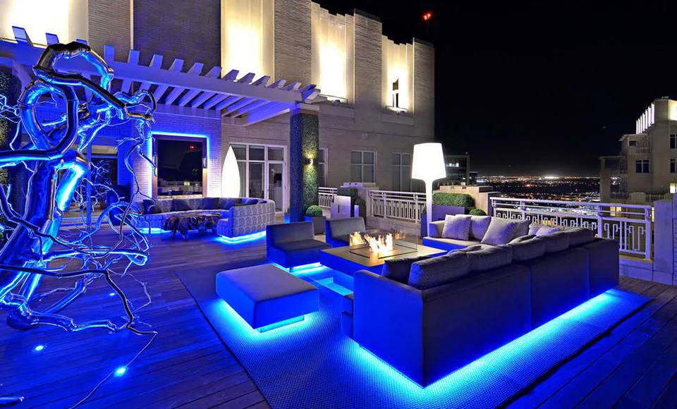 С помощью универсальных светодиодных лент вы можете украсить пространство позади телевизора, каминной полки или под столами, чтобы настроить цвета вашей тусовки по своему усмотрению.