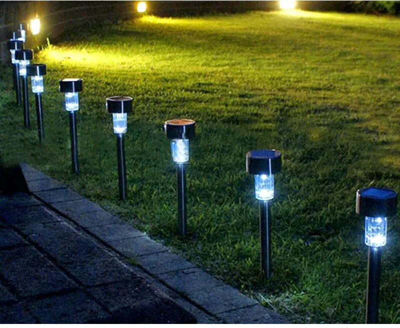 Подсветка садовой дорожки с помощью светильников на солнечных батареях